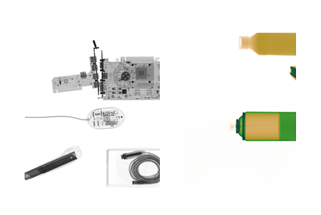▲ dual energy imaging: Automatically integrates the images into a new color image by successively scanning with different working parameters.This color image uses different colors to distinguish the components of the test object to a certain extent, which is helpful to analyze the internal material composition of the test object